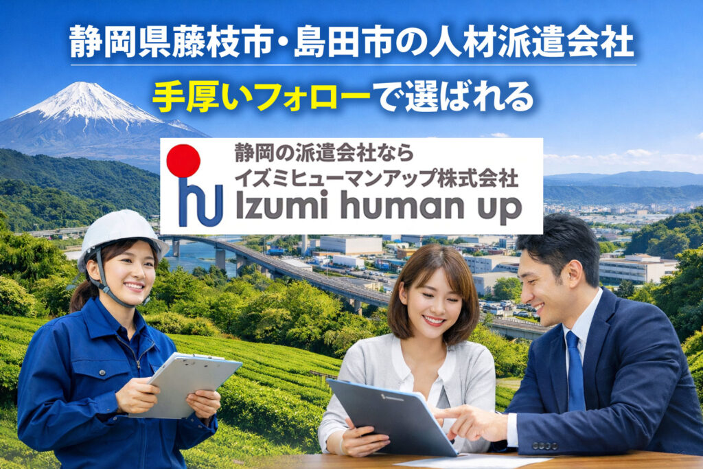 この記事では、藤枝市・島田市エリアの雇用状況とともに、派遣会社選びで重要となるポイント、そしてイズミヒューマンアップが支持されている理由についてご紹介します。